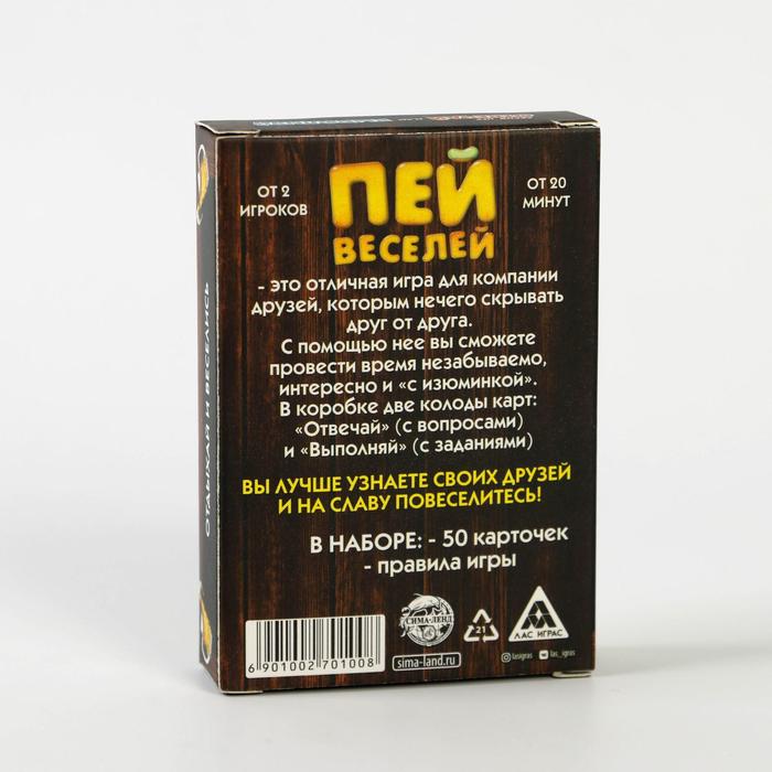 Купить игра для компании "пей веселей" 50 карт от 180 руб. с доставкой до пункта выдачи в Сельце. Интернет магазин ДекаМаркет. Оплата при получении.